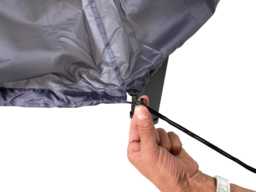 - Die Abdeckplane lässt sich einfach und schnell über den Tisch ziehen und mittels praktischem Zugsystem am Tisch befestigen