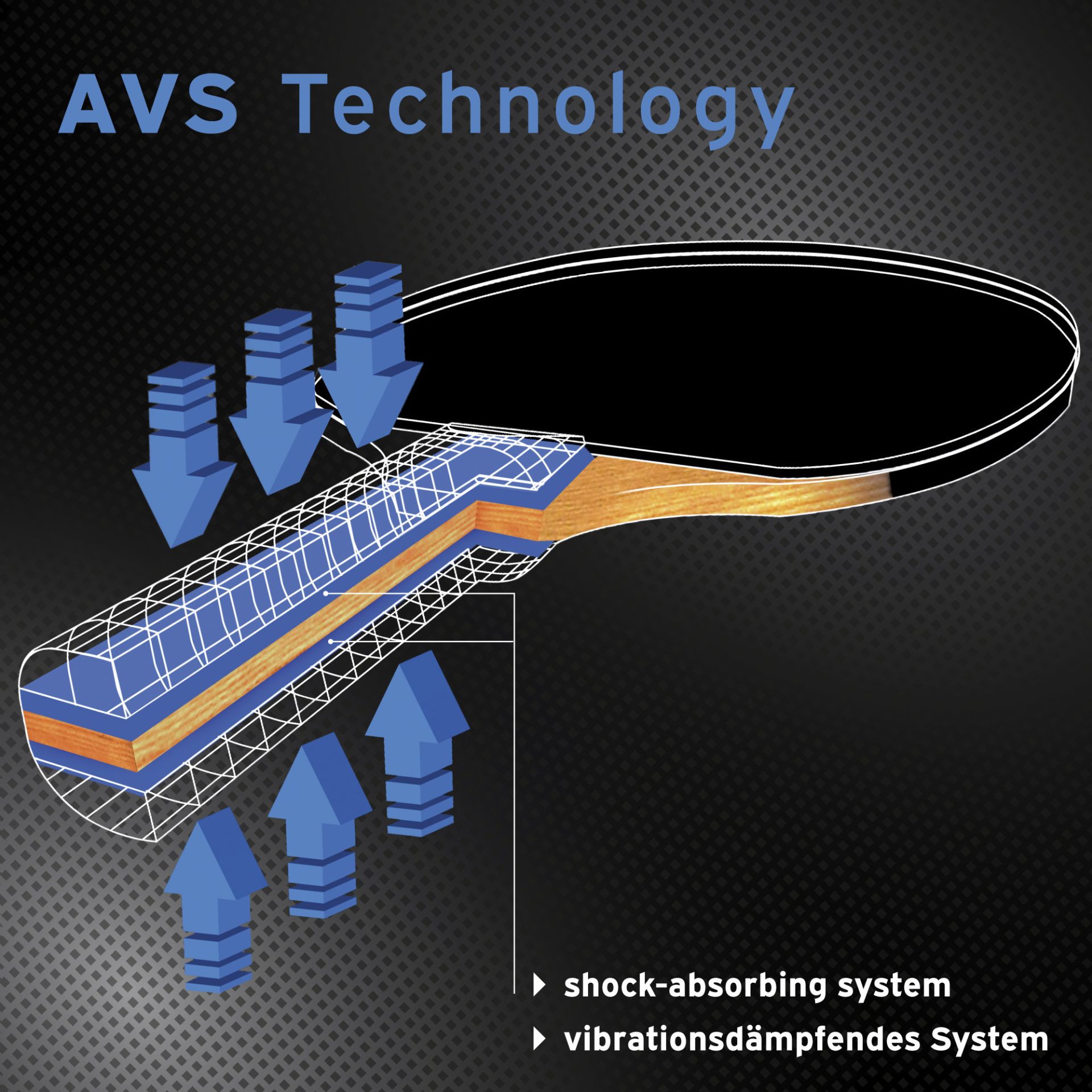 - Technologien: a) AVS-Griffdämpfung > verbesserte Ballkontrolle & Ballgefühl, b) PLS-Hohlgriff > mehr Power durch verlagerten Schwerpunkt, c) ERGO-Griff > perfektes Handling