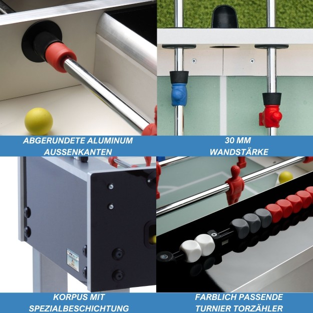 - Besonderheiten: 3 mm Spielstangenwandung, Fiberglas verstärkte Torwände
