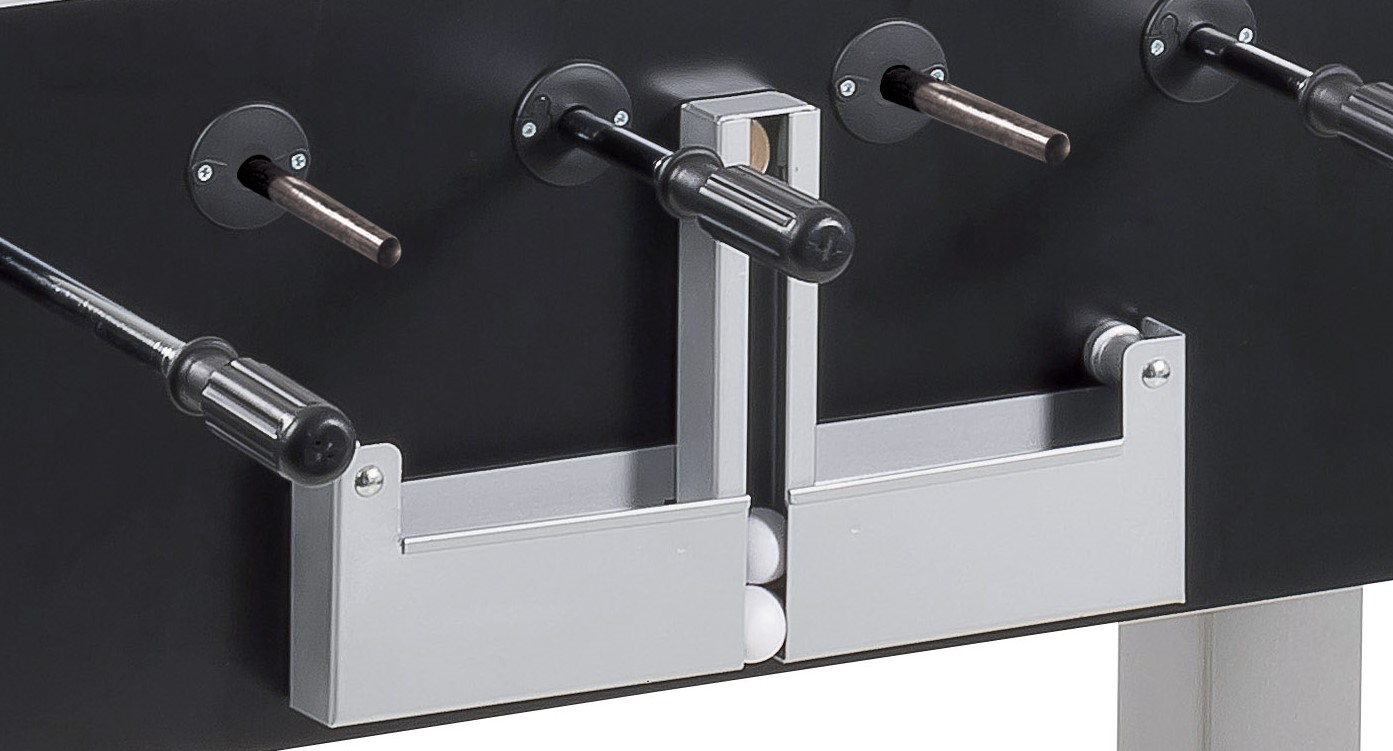 Die zentrale Ballentnahme wird durch eine Ballführung ergänzt. Somit bleiben alle Kickerbälle wo sie hingehören – keine Einzelentnahme möglich.