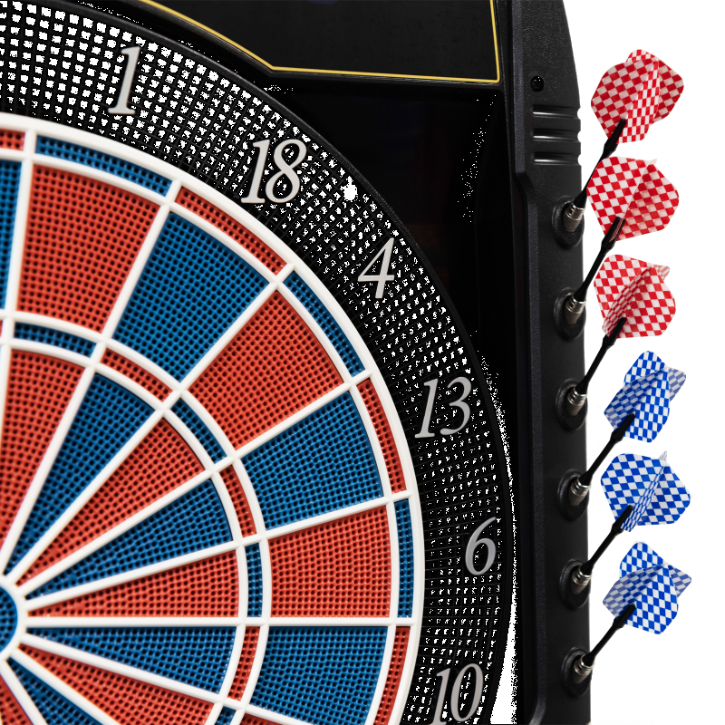 Integrierter Darthalter am Rand des Boards, der Platz für bis zu 12 Darts bietet