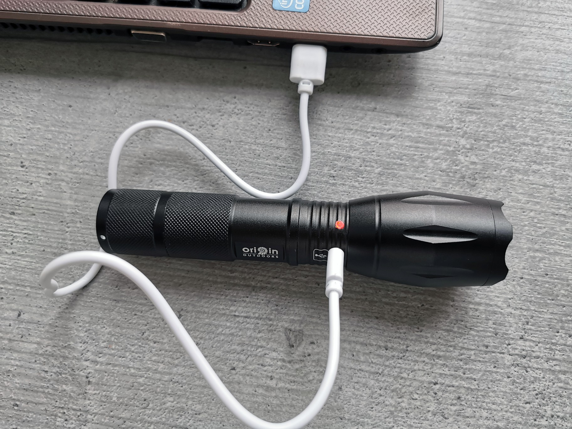 Über den Mikro-USB-Anschluss kann der 18650-Li-Ionen Akku direkt über die Lampe geladen werden