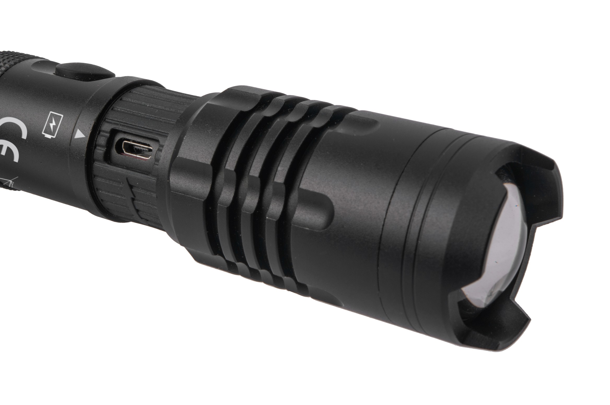 Die Aufladung des leistungsstarken 18650 Li-Ionen-Akkus erfolgt über einen Micro-USB-Anschluss