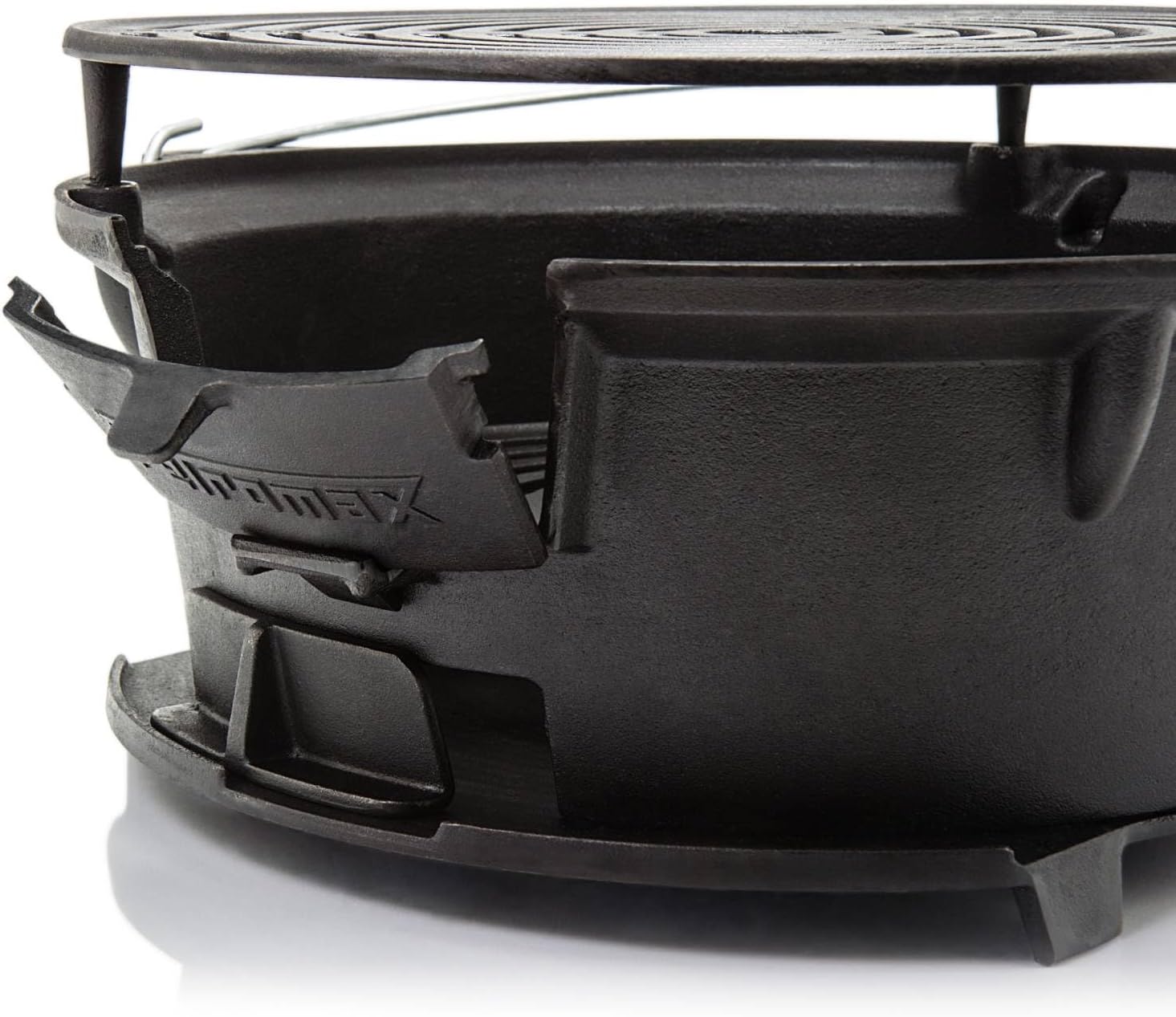 Der Petromax Feuergrill tg3 ist ein aus hochwertigem Gusseisen gefertigter Grill, der mit Holzkohle und Grillbriketts angefeuert werden kann. Der in zwei Stufen höhenverstellbare Grillrost, die großzügige Luftzufuhrregelung und der Tragehenkel lassen ihn nicht nur als Grill überzeugen, sondern machen ihn auch zu einer perfekten Kochstelle für Petromax Feuertöpfe (bis zur Größe ft12). Der Kohlerost ist außerdem als Einlegerost mit Füßen für den ft12 und ft18 geeignet, wenn z. B. Brot oder Kuchen gebacken werden, um ein Anbrennen zu verhindern. Dank der vorbehandelten Oberfläche (seasoned finish) ist der tg3 sofort einsatzbereit. Durch den natürlichen Antihafteffekt von Gusseisen ist der Grillrost besonders einfach zu reinigen.