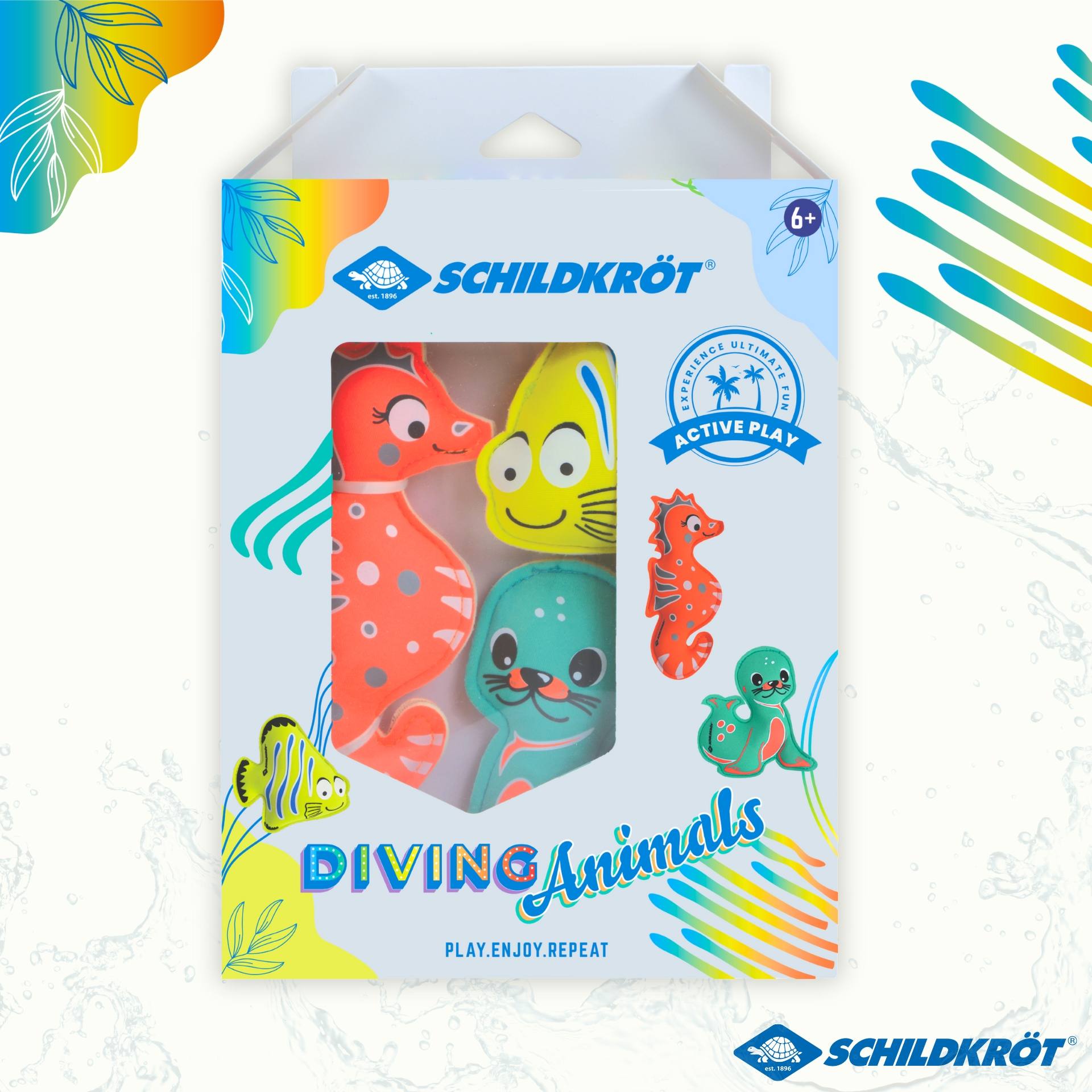 Die Schwimm- und Tauchtiere von Schildkröt bieten das ideale Ausdauertraining im Wasser. Sie sinken langsam zu Boden, die leuchtenden Farben sorgen für gute Sichtbarkeit.
