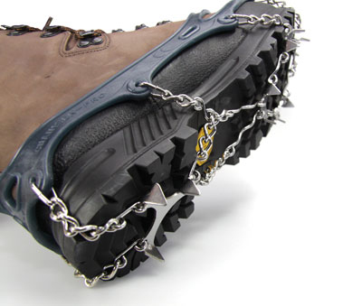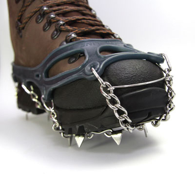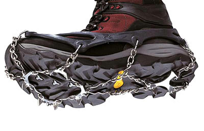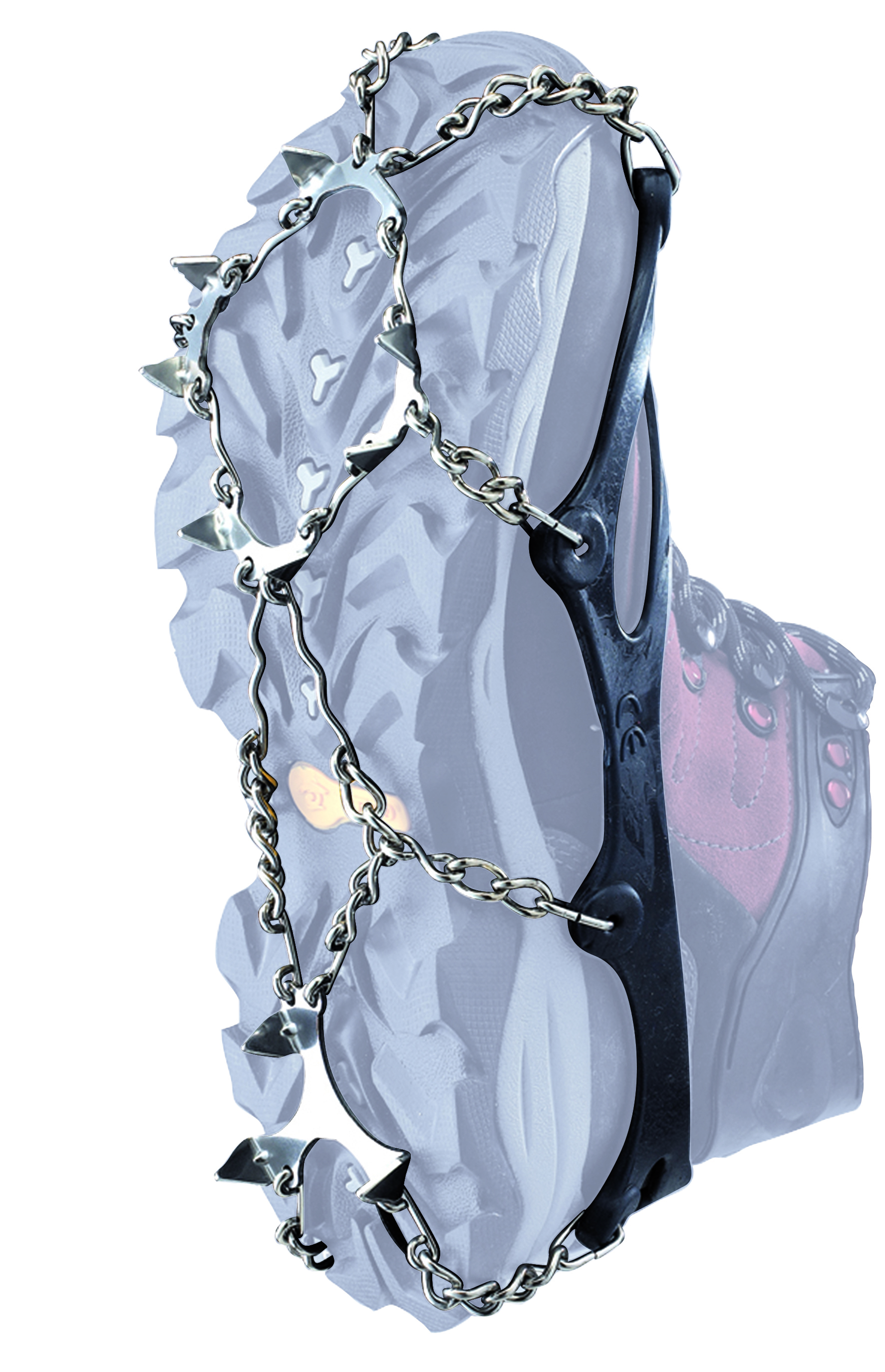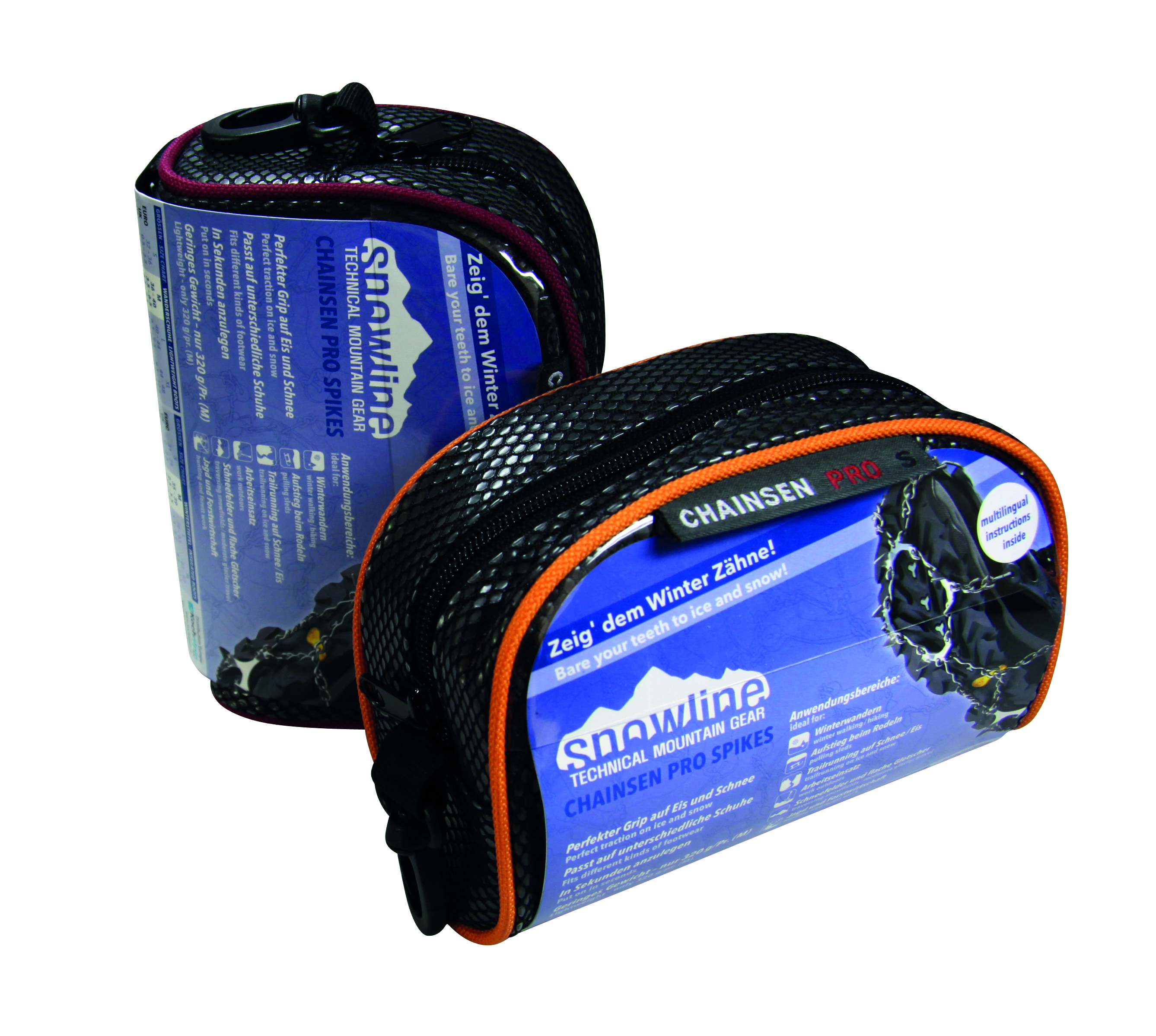 Ob auf Eis, auf gepresstem Schnee oder im Geröll - die Snowline Schuhketten geben sicheren Halt. Passend auf Bergschuhe, isolierte Winterstiefel oder Laufschuhe sind Snowline Schuhketten ideal zum Winterwandern, beim Aufstieg zum Rodeln, beim Queren von Altschneefeldern, beim Trailrunning, oder im täglichen Arbeitseinsatz. Der Frontbügel hält den Schuh sicher fixiert, sogar bei steileren Anstiegen, oder im Laufeinsatz. Die 11 Spitzen aus gehärtetem Edelstahl geben besten Halt. Die sehr gut verarbeiteten Ketten können dank Elastomer-Gummi in Sekundenschnelle an- und ausgezogen werden und finden im praktischen Packbeutel in jeder Tasche oder Rucksack problemlos Platz.