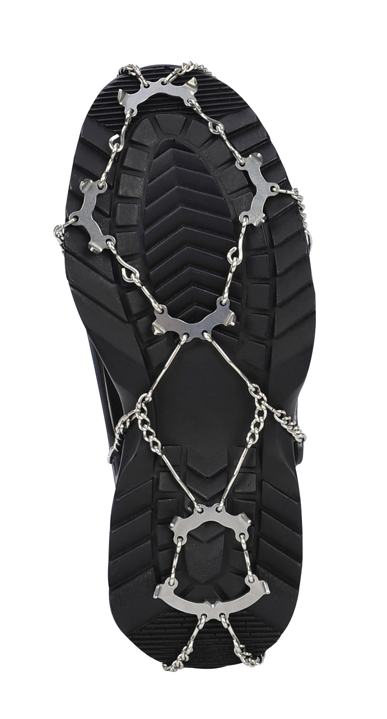 Das Snowline 'Trail'-Modell überzeugt durch sein sehr kleines Packmaß und das geringe Gewicht. 13 kurze Zacken (7,5 mm lang) aus rostfreiem Stahl sorgen für Ihre Trittsicherheit und perfekten Grip auf vereisten Wegen und in hartem Schnee. Der schlanke Elastomergummi sitzt sehr gut und ist ideal auch für leichte Schuhe beim Trailrunning oder Wandern. In Sekunden anzulegen und ohne zusätzliche Riemen oder Schnallen. Komplett mit Packtäschchen.