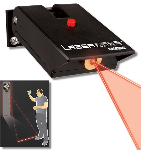 - Die Winmau Laser Oche markiert mit einem Laserstrahl die Abwurflinie, die auf jedem Bodenbelag bestens sichtbar ist.